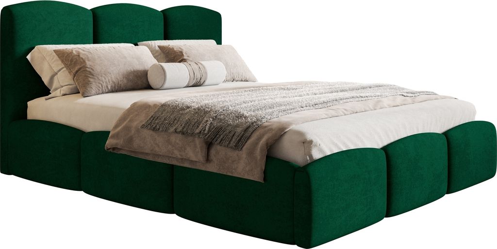 Polsterbett 180x200 Roma Slim - dickem Schaumstoff, Bettkasten, Metall Lattenrost - Samtstoff Grün