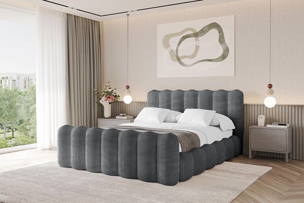ALTDECOR Polsterbett mit Bettkasten - ALOVA-Z - 180x200 Cord - Dunkelgrau - Bett mit Matratze H3/H4, Kopfteil und Fußteil, Boxbett, Doppelbett mit...