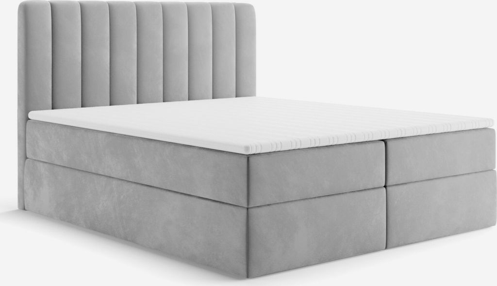 ALTDECOR Boxspringbett mit Fußteil, H3 Matratze und Topper - 180x200 cm - MOETI-Z - Hellgrau Samt - Polsterbett mit Bettkasten und Lattenrost, Bet...