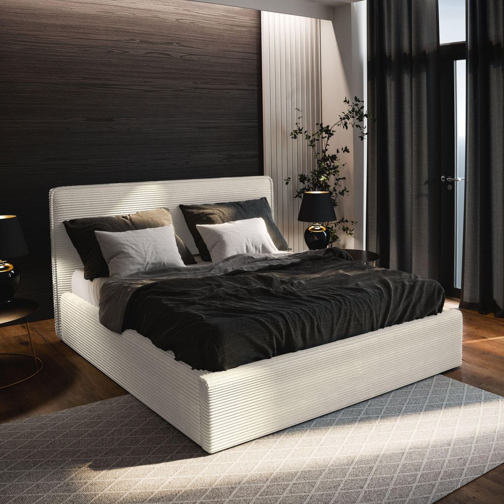 Masseno Polsterbett PARMA 180x200 cm, Polsterbett mit Bettkästen -Creme, LINCOLN 03