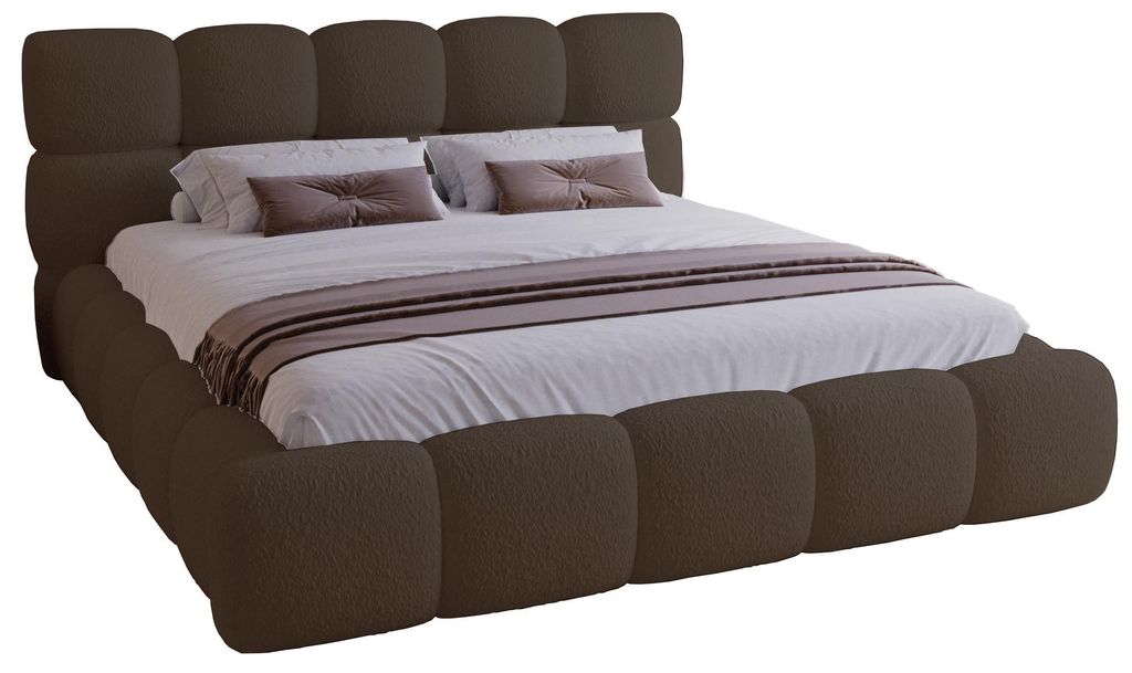 Polsterbett 180x200 mit Bettkasten Lucca - Doppelbett Bouclé, Lattenrost, Dicker Schaum Braun