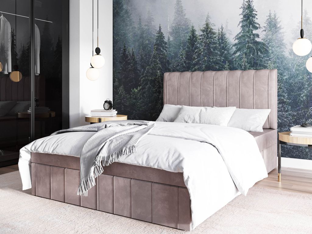 Masseno Polsterbett VERTO 180x200 cm, Polsterbett mit Bettkästen -Rosa, KRONOS 27
