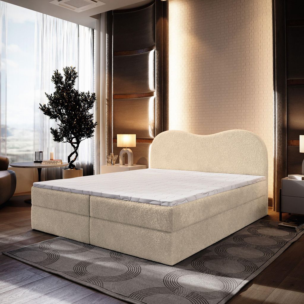 Masseno Boxspringbett FLUVIA N 180x200 cm Komplett-Set mit Bonell Matratze und Topper, Polsterbett mit Bettkästen -Creme, NOW OR NEVER 02