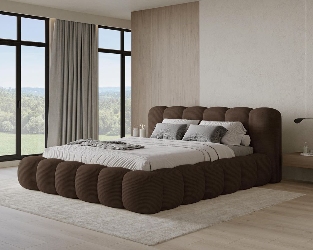 Chilly Design Polsterbett Stone Cord Stoff Braun 140x200 cm mit Stauraum Poso 06