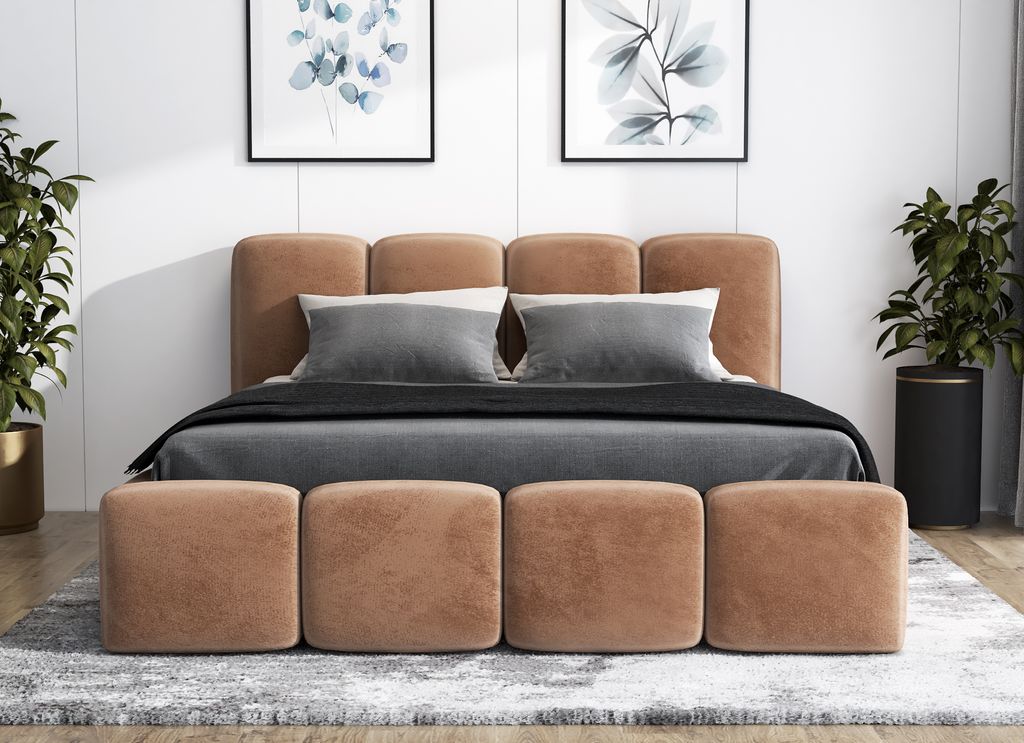 FEDVE Polsterbett Fummo aus Bouclé-Stoff 120x200 cm, Braun
