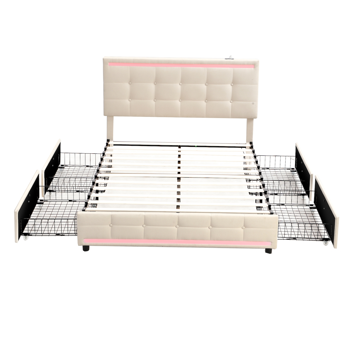 Polsterbett 140x200 cm mit LED und Schubladen, Doppelbett mit Stauraum und Lattenrost, Beige, modernes Design, ideal für Schlafzimmer, funktional ...