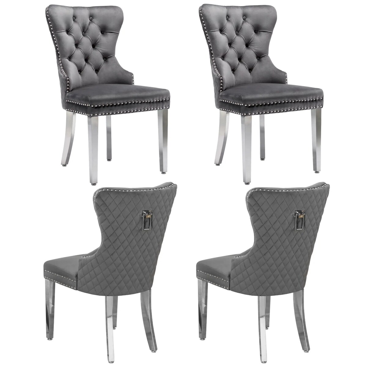 OKWISH Esszimmerstuhl Set 4 Samt Grau 100x61x45 cm mit Eichenbeinen Knopfheftung Nieten Chromklopfer komfortabler Polsterstuhl modern