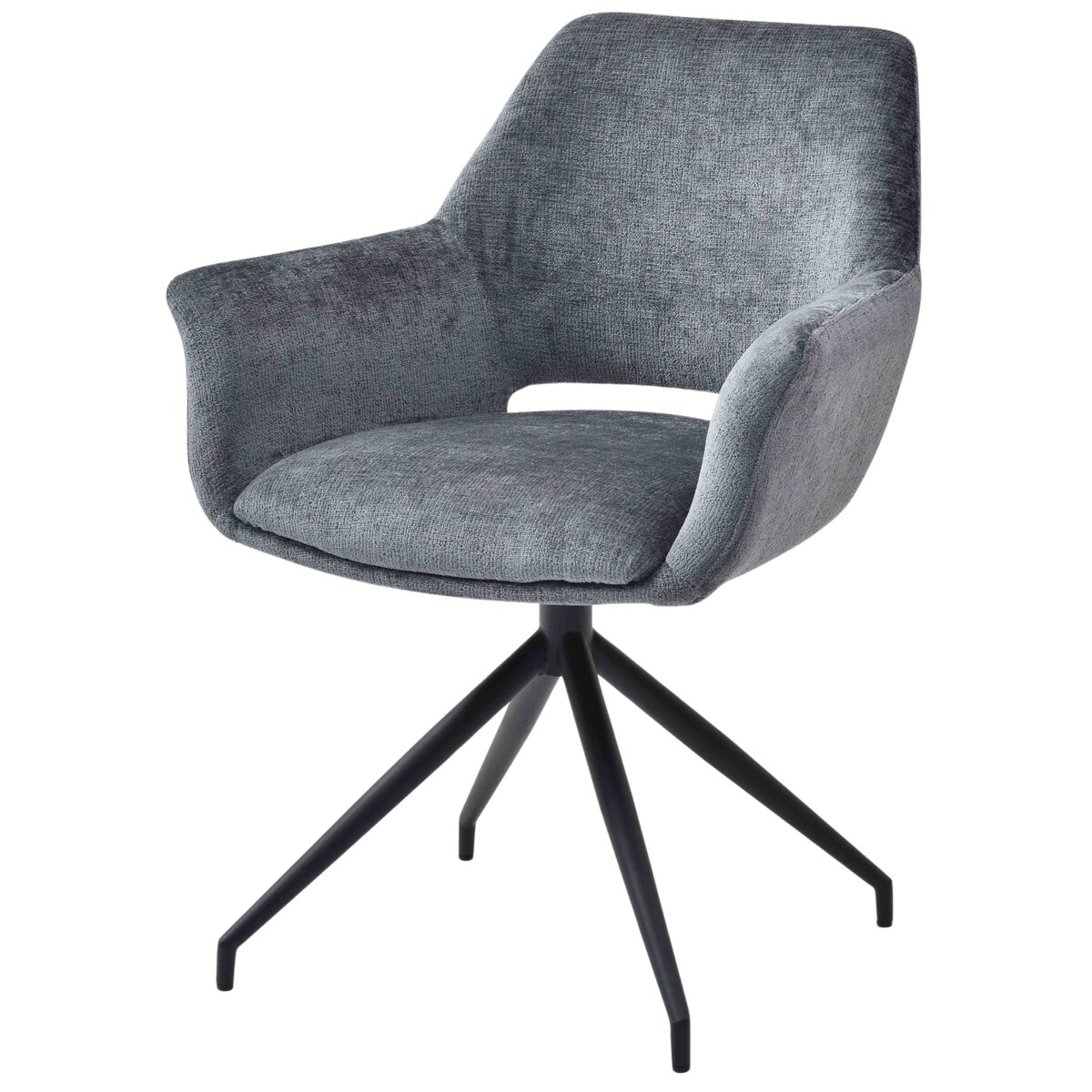 Mendler Esszimmerstuhl HWC-M53, Küchenstuhl Polsterstuhl mit Armlehne, drehbar Auto-Position, Metall Stoff MVG ~ dunkelgrau
