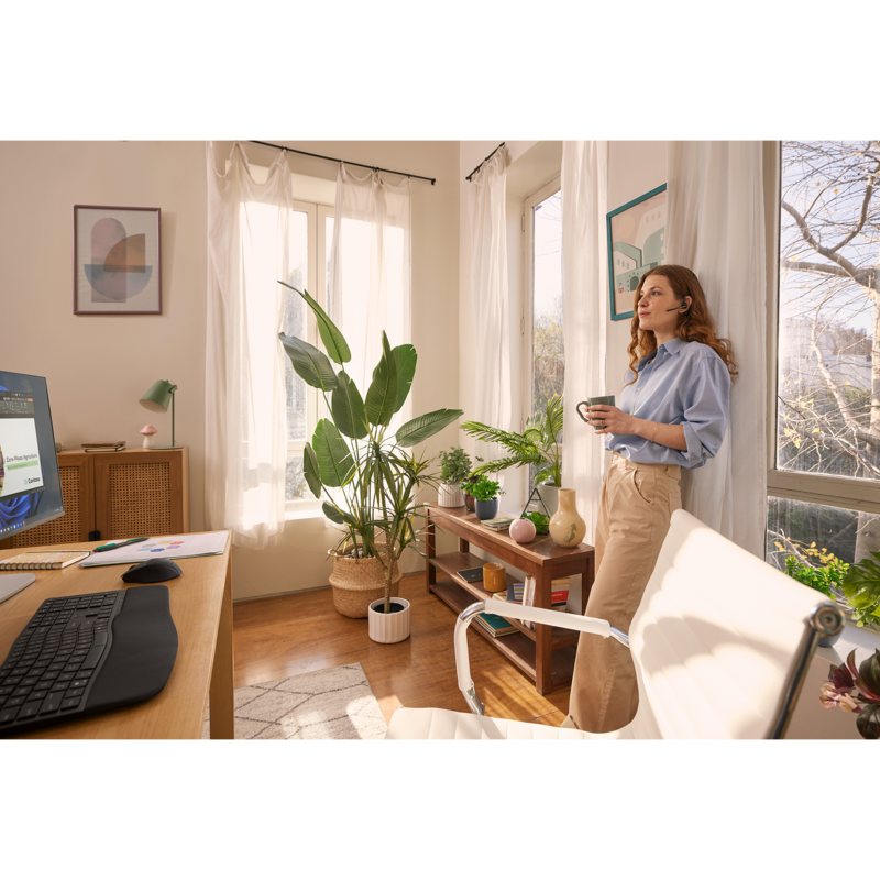 Poly Voyager Legend 30 Mono-Bluetooth-Headset mit 4 Mikrofonen, intelligenten Sensoren und Geräuschunterdrückung. Ideal für Geschäftsleute, die viel