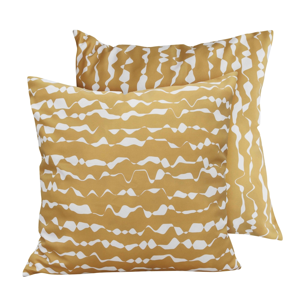 Oviala Business Set mit 2 quadratischen Polyesterkissen 45x45x8 cm weiß und ocker