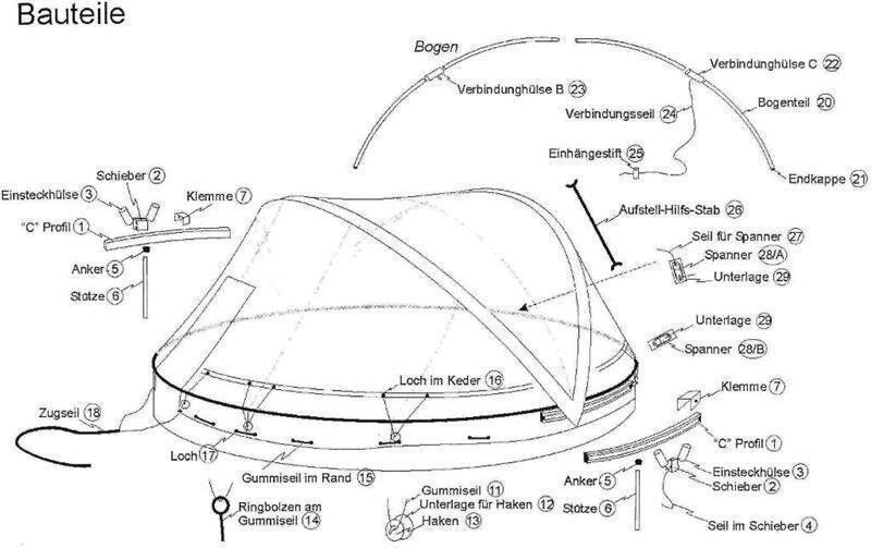 Cabrio Dome Ø 350 - 360 cm I Rund Pool Überdachung