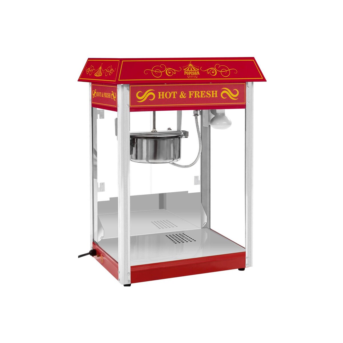 Hendi Popcornmaschine mit Innenbeleuchtung und praktischer Popcorn-Klappe