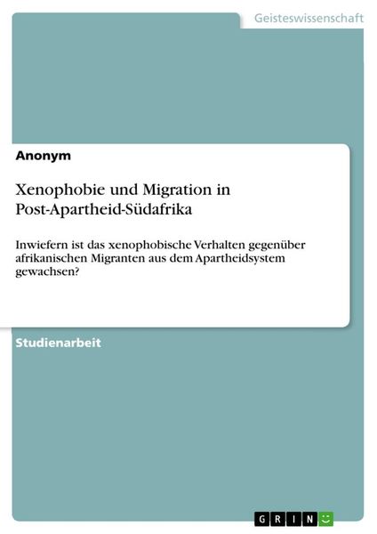 Xenophobie und Migration in Post-Apartheid-Südafrika, Taschenbuch von , GRIN, 9783346194817