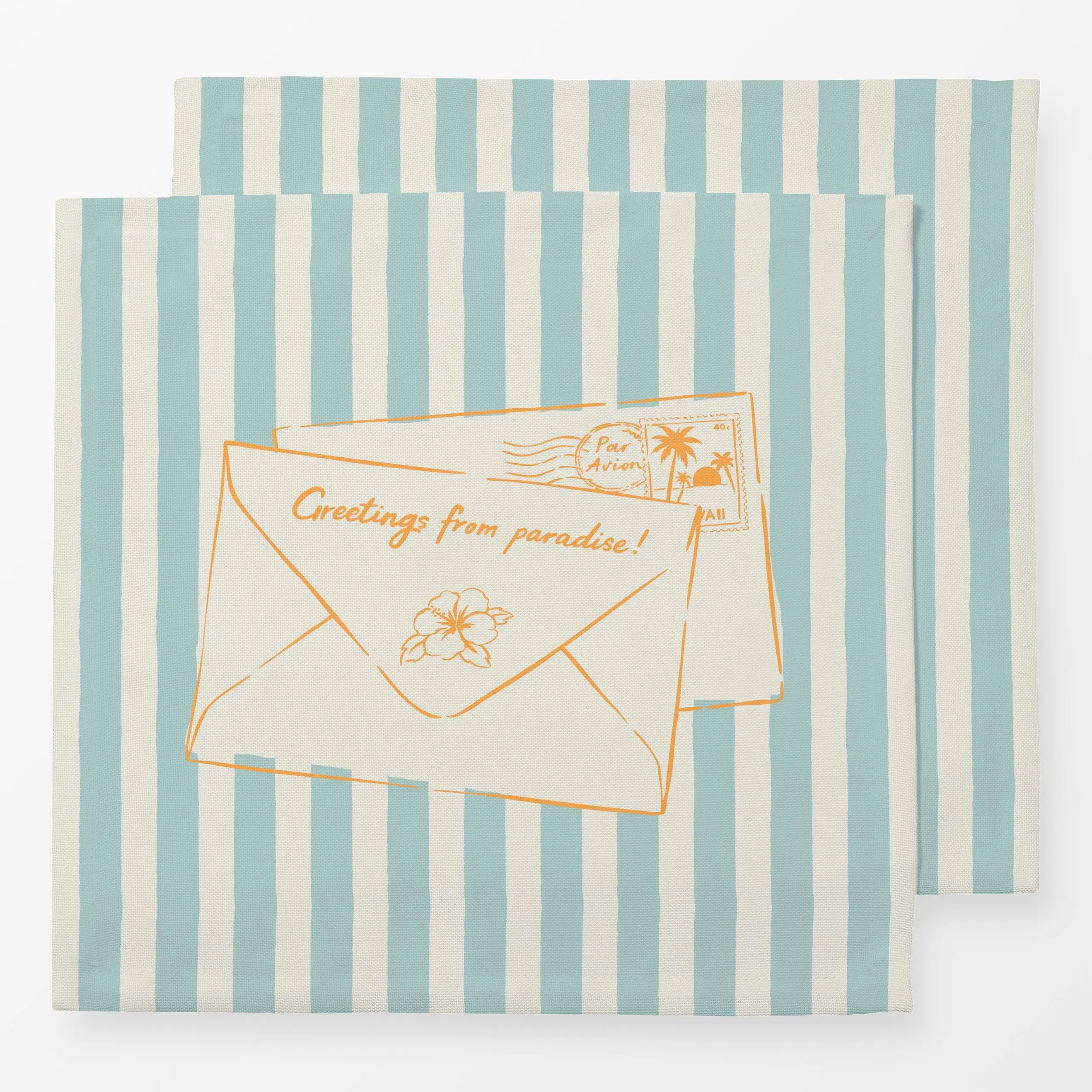 Servietten Post aus dem Paradies - Sommer, Sprüche & Schriftzüge - von „Katrin Graff"; Orange, Reisen, Lettering, hellblau, ...