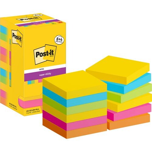 Post-it Super Sticky Notes Haftnotizen 47,6 x 47,6 mm 12 Blöcke im Kartonspender