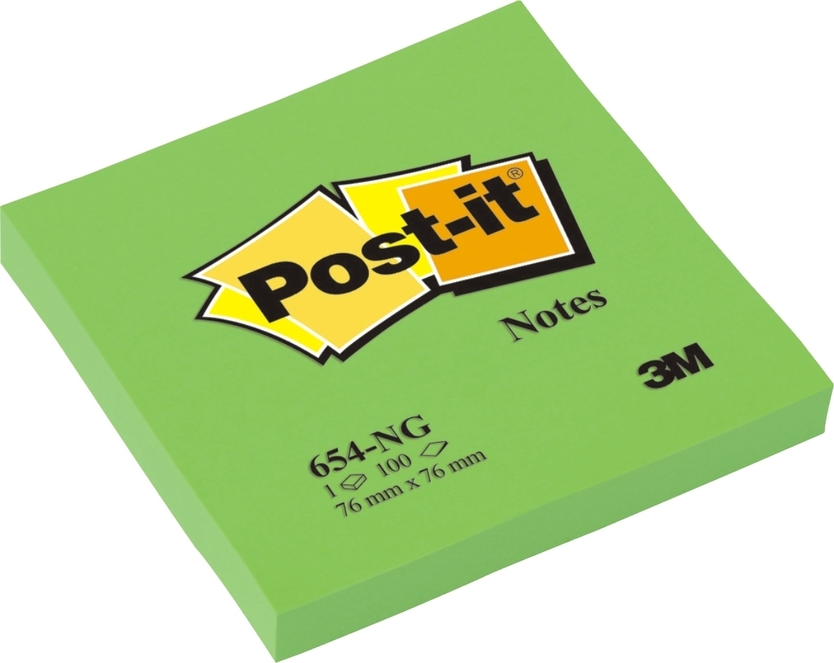 Post-it Notes, Neongrün, 76 mm x 76 mm, 100 Blatt/Block, 100% PEFC, SGSCH-PEFC-COC-110078 | 1 Stück