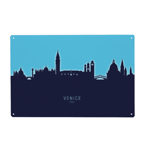 Metall Poster "Venice Italy Skyline Glow Blue" artboxONE - Städte,Städte / Venedig