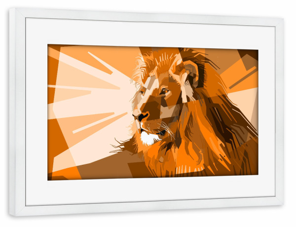 Poster mit Rahmen weiß "Löwe Art orange" artboxONE - Tiere,Abstrakt,Reise / Afrika