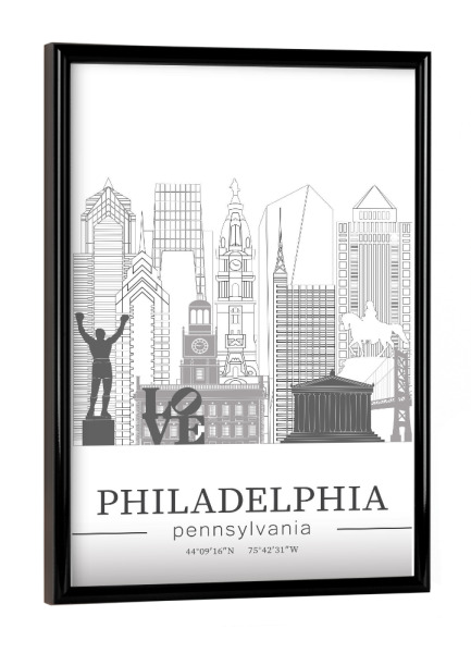 Poster mit schwarzem Rahmen "Philadelphia skyline line art" artboxONE - Städte,Reise,Architektur,Kartografie