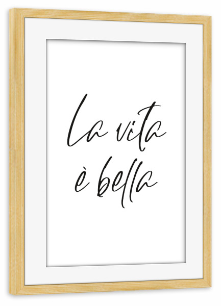 Poster mit Rahmen kiefer "La vita è bella" artboxONE - Typografie,Schwarzweiß,Städte / Mailand