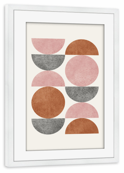 Poster mit Rahmen weiß "Holzschnitt-Halbmond - Braunrosa" artboxONE - Abstrakt,Geometrie