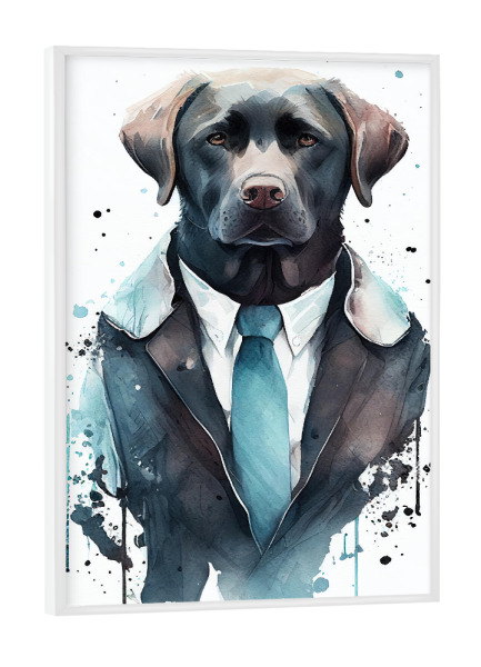 Poster mit weißem Rahmen "Labrador trägt Anzug und Krawatte" artboxONE - Tiere,Lustig