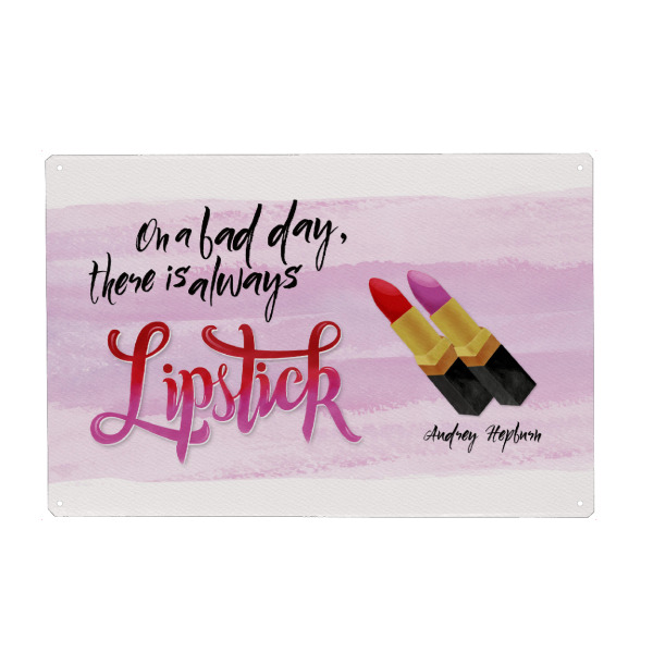 Metall Poster "Nimm Lippenstift und lächle" artboxONE - Typografie,Menschen,Lustig