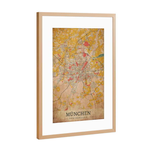 Poster mit Rahmen Kupfer "Vintage Stadt München" artboxONE - Städte / München,Kartografie