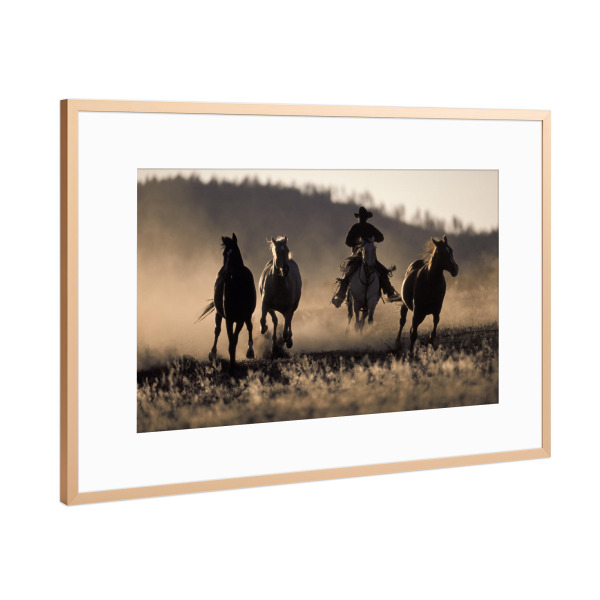 Poster mit Rahmen Kupfer "Rancher's Ride" artboxONE - Tiere,Menschen - Sepia,Cowboy,Pferd,Pferde,Western