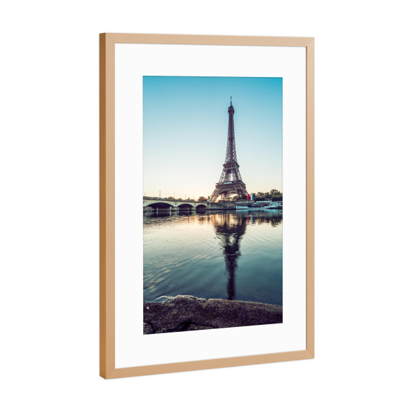 MuchoWow MuchoWow Gerahmtes Poster Wasserblick auf den Eiffelturm und Paris 60x40 cm - Poster mit zchwarzem Bilderrahmen - Schlafzimmer - Plaka...