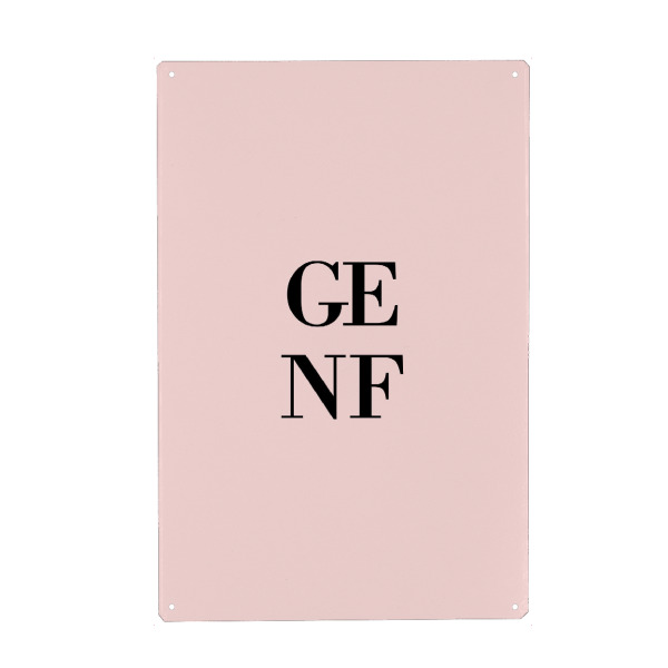 Metall Poster "Genf Rosa" artboxONE - Städte,Typografie,Städte / Weitere - Schweiz,Suisse,Switzerland,Buchstaben,Schrift,Letters,Europa,Geneva