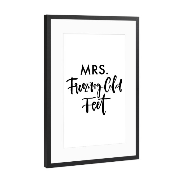 Poster mit Rahmen Schwarz (Metallic) "Mrs. Freezing Cold Feet" artboxONE - Typografie,Schwarzweiß,Lustig
