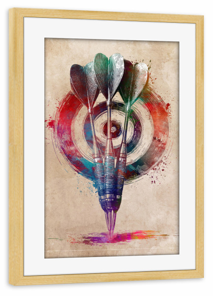 Poster mit Rahmen kiefer "Dartsportkunst E" artboxONE - Sport,Sport / Motivation - Dart,Darts,Spiel,Sport,Dartspieler,Dartscheibe