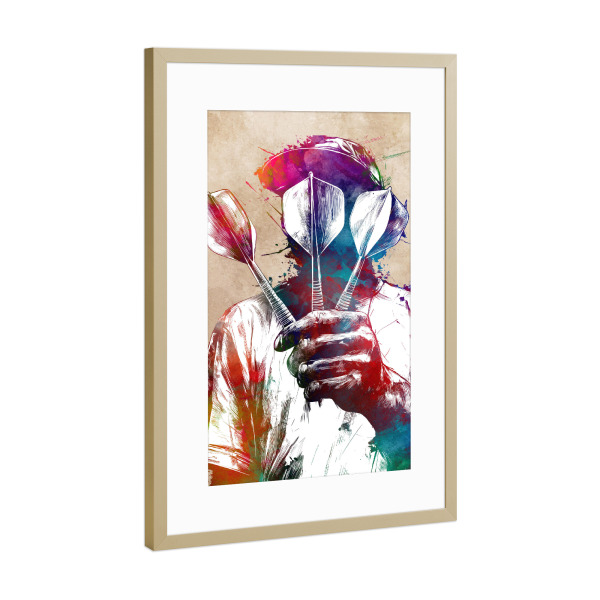 Poster mit Rahmen Gold "Dartsportkunst D" artboxONE - Sport,Sport / Motivation - Dart,Darts,Spiel,Sport,Dartspieler,Dartscheibe