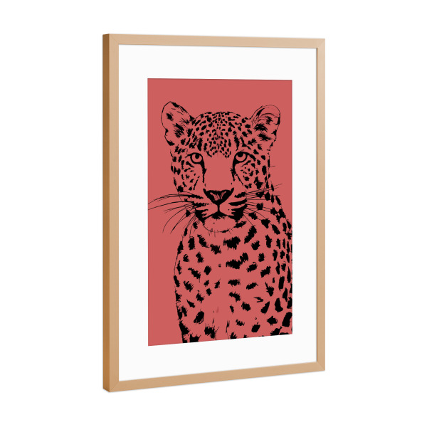 Poster mit Rahmen kiefer "Leopard head red" artboxONE - Natur,Tiere - Leopardo,Animal,Natureza,Moderno,Pop,Arte de linha,Selva,Animal selvagem,Desenho