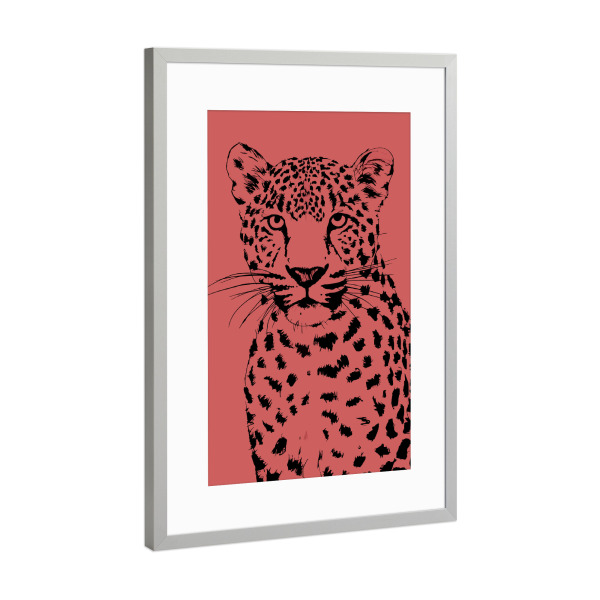 Poster mit Rahmen Silber "Leopard head red" artboxONE - Natur,Tiere - Leopardo,Animal,Natureza,Moderno,Pop,Arte de linha,Selva,Animal selvagem,Desenho