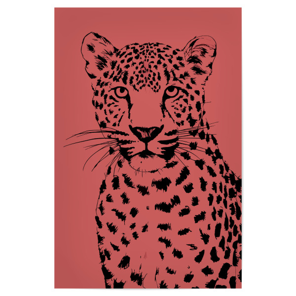 Poster 30x20 cm "Leopard head red" artboxONE - Natur,Tiere - Leopardo,Animal,Natureza,Moderno,Pop,Arte de linha,Selva,Animal selvagem,Desenho