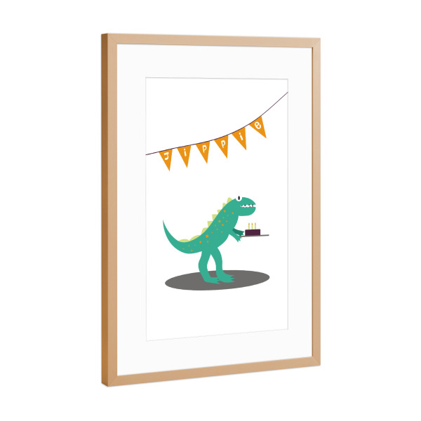 Poster mit Rahmen Kupfer "Jippie - fröhlicher Dinosaurier" artboxONE - Für Kinder,Tiere