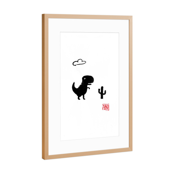 Poster mit Rahmen Kupfer "Keine Verbindung" artboxONE - Für Kinder,Schwarzweiß,Lustig - Internet,Aussenseiter,Spiel,Sumie,Japan,Dino,Dinosaurier