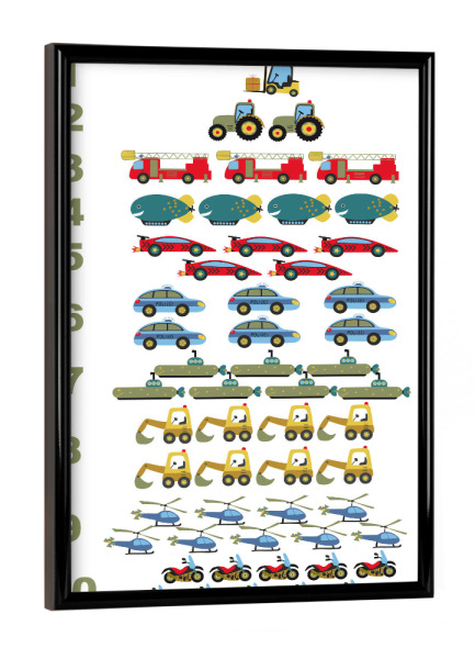 Poster mit schwarzem Rahmen "Zahlen Lernen Fahrzeuge" artboxONE - Reise,Für Kinder