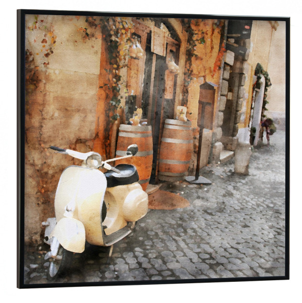Poster mit schwarzem Rahmen 30x30 cm "Weißes Moped" artboxONE - Städte,Architektur,Automobile - Reisen,Fahrzeuge,Moped,Weiß,Gasse,Straßenansicht,Stadt