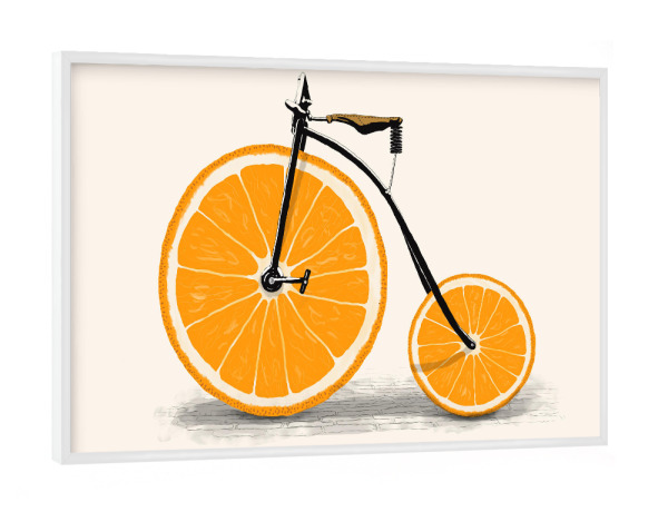 Poster mit weißem Rahmen "Vitamin" artboxONE - Sport,Sport / Sommerspiele - Zweirad,Orange,Orangen,Rad,Räder,Fahrrad,Fahrzeug,Vitamin,Vitamin c