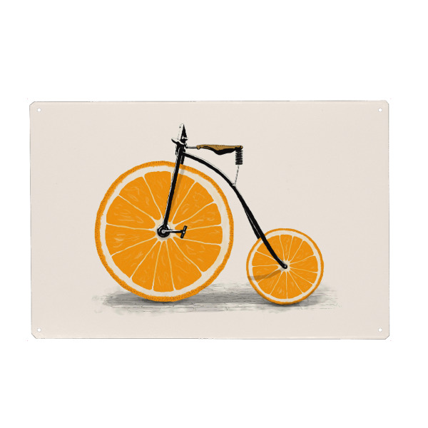 Metall Poster "Vitamin" artboxONE - Sport,Sport / Sommerspiele - Zweirad,Orange,Orangen,Rad,Räder,Fahrrad,Fahrzeug,Vitamin,Vitamin c - Blechschild