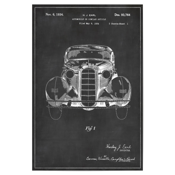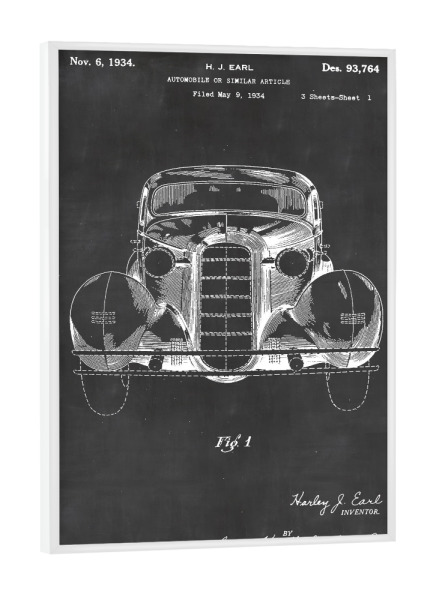 Poster mit weißem Rahmen "Retro Auto" artboxONE - Schwarzweiß,Automobile,Retro - Retro,Auto,Automobil,Vintage,Patent,Fahrzeug