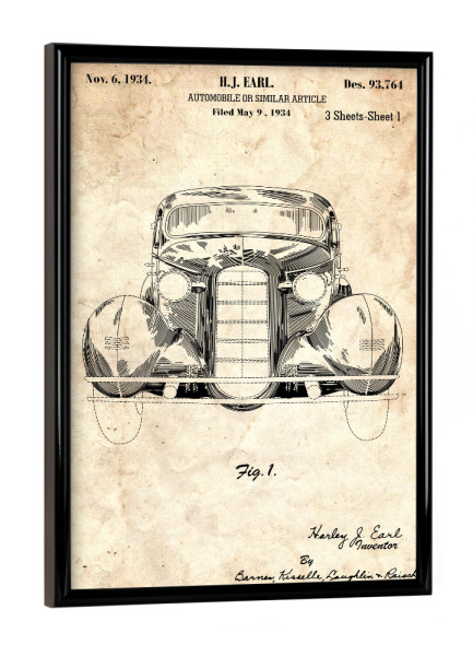 Poster mit schwarzem Rahmen "Retro Auto (Antik)" artboxONE - Automobile - Retro,Auto,Vintage,Patent,Fahrzeug,Motor