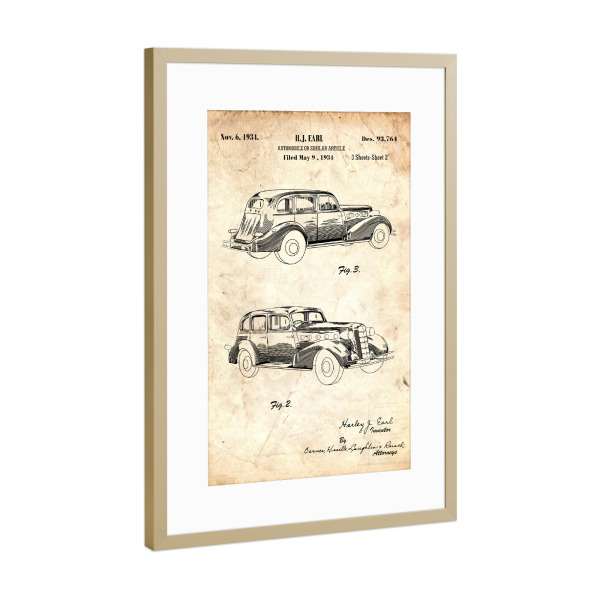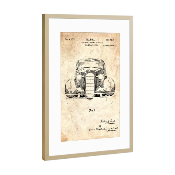 Poster mit Rahmen Gold "Retro Auto (Antik)" artboxONE - Automobile - Retro,Auto,Vintage,Patent,Fahrzeug,Motor