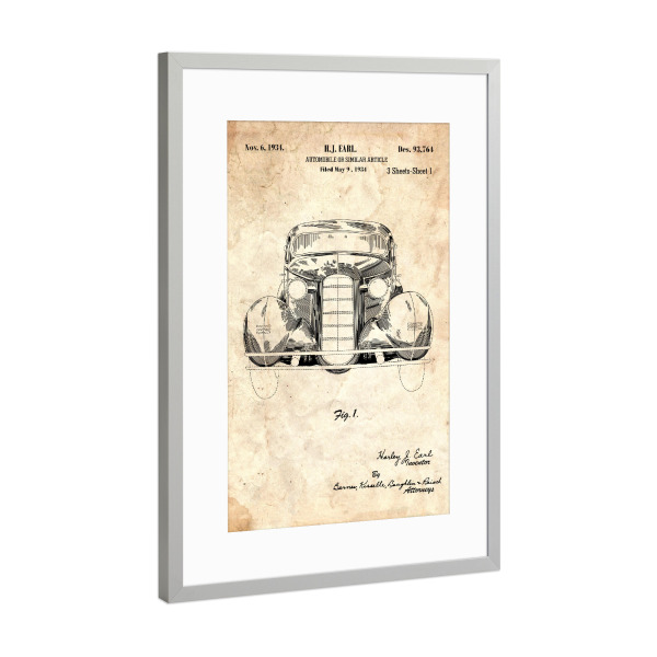 Poster mit Rahmen Silber "Retro Auto (Antik)" artboxONE - Automobile - Retro,Auto,Vintage,Patent,Fahrzeug,Motor