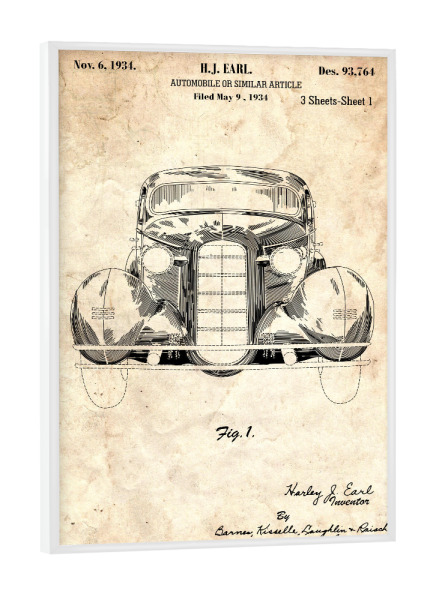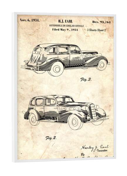 Poster mit weißem Rahmen "Retro Auto (Antik)" artboxONE - Automobile - Retro,Auto,Vintage,Patent,Fahrzeug,Motor