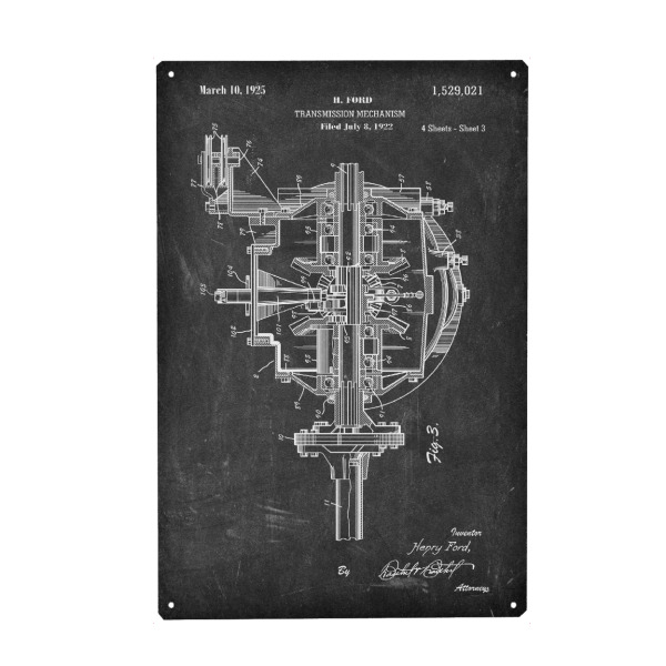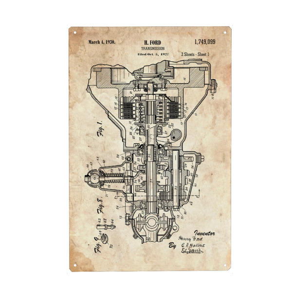 Metall Poster "Auto Getriebe Patent (Antik)" artboxONE - Automobile,Für Papa - Retro,Auto,Automobil,Vintage,Patent,Fahrzeug,Motor,Fahren,Getriebe