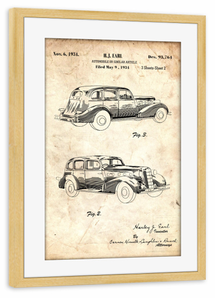 Poster mit Rahmen kiefer "Retro Auto (Antik)" artboxONE - Automobile - Retro,Auto,Vintage,Patent,Fahrzeug,Motor